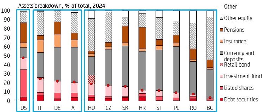 Gospodarstwa domowe CEE wykazują ostrożne podejście do alokacji aktywów, przy czym waluty i depozyty pozostają ich głównymi aktywami. Oznacza to przestrzeń do większej dywersyfikacji, na przykład poprzez zwiększenie alokacji w aktywa rynku finansowego, takie jak obligacje, akcje i fundusze.